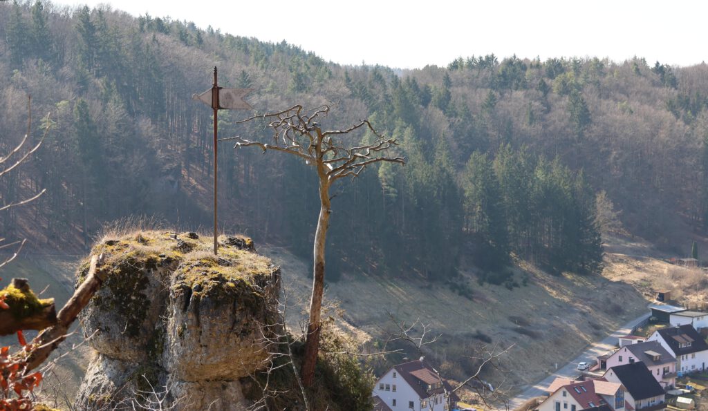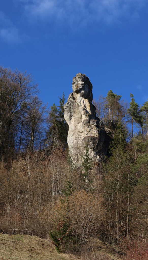 Im einem Tal am westlichen Rand der Oberpfalz schlängelt sich der Högenbach in Richtung des Flusses Pegnitz. Auf Höhe des Dorfes Haunritz (Weigendorf) ragt eine durch Verwitterung entstandene Dolomitnadel auf.